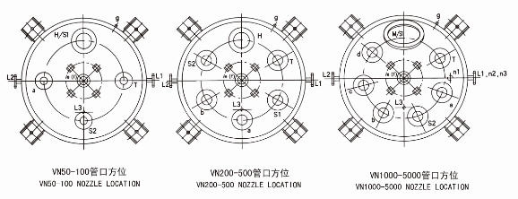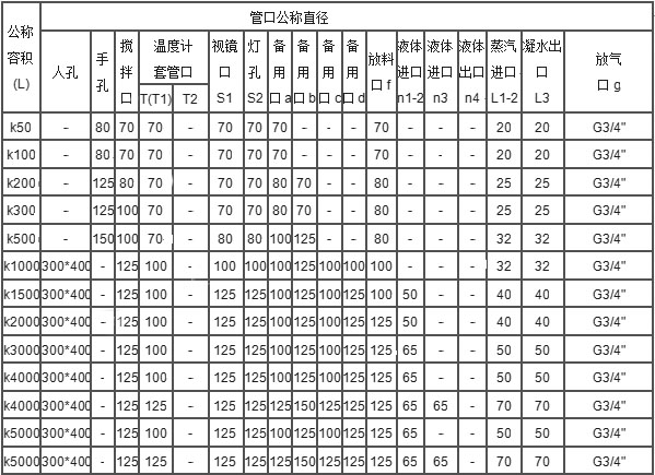 K型50L-5000L搪玻璃反应管口方位及DG尺寸:
